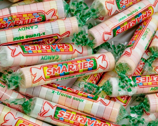 X-treme Sour Smarties, are the same as original Smarties but have an intense, tangy, and sour flavor. These candies are perfect for those who enjoy a challenge and come in flavors like orange, pineapple, cherry, strawberry, and grape.