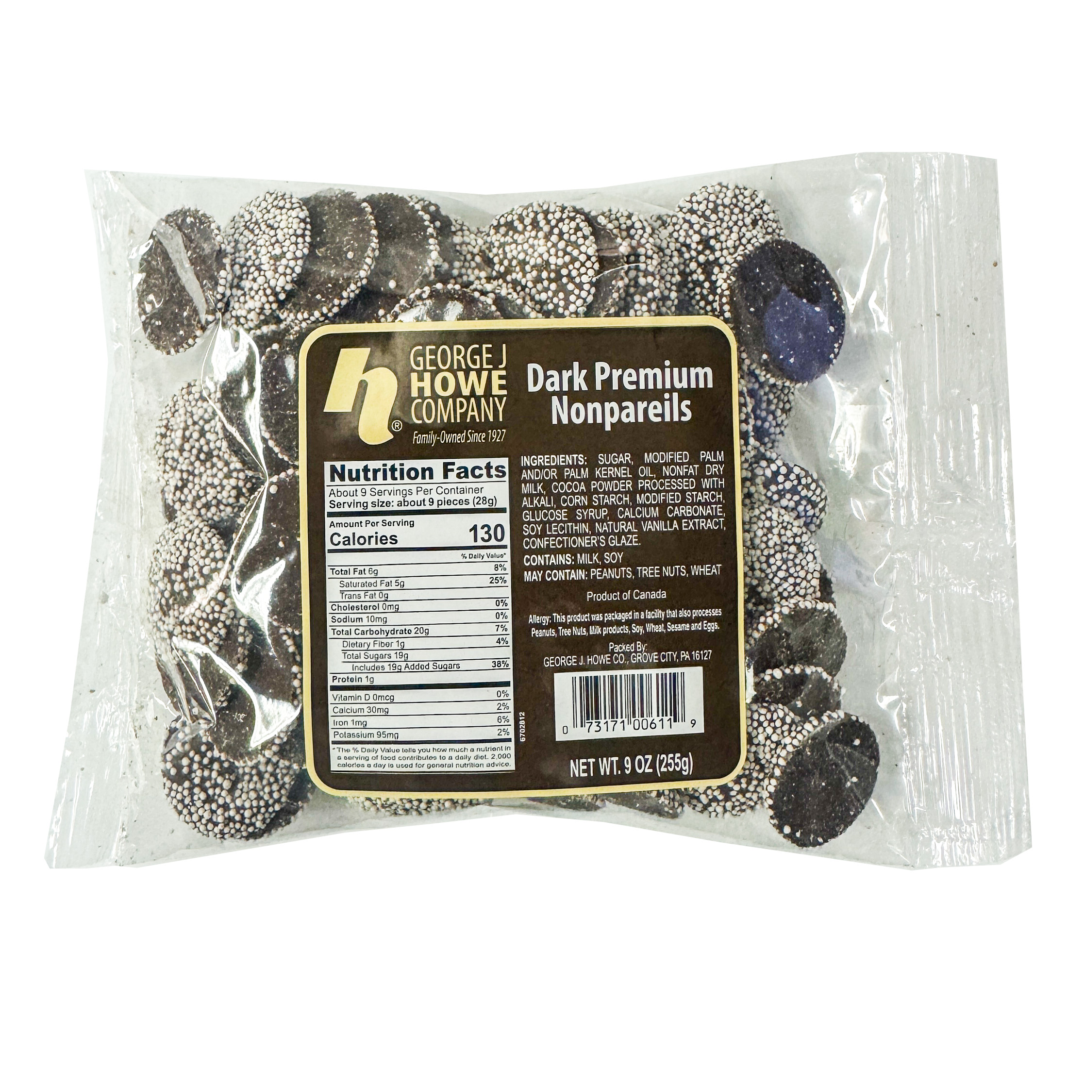 Savor Howe classic Dark Premium Nonpareils confectionery delight that tantalizes the taste buds. Each delectable disk features smooth, creamy dark chocolate topped with tiny white sprinkles, creating a perfect balance of sweetness and texture.