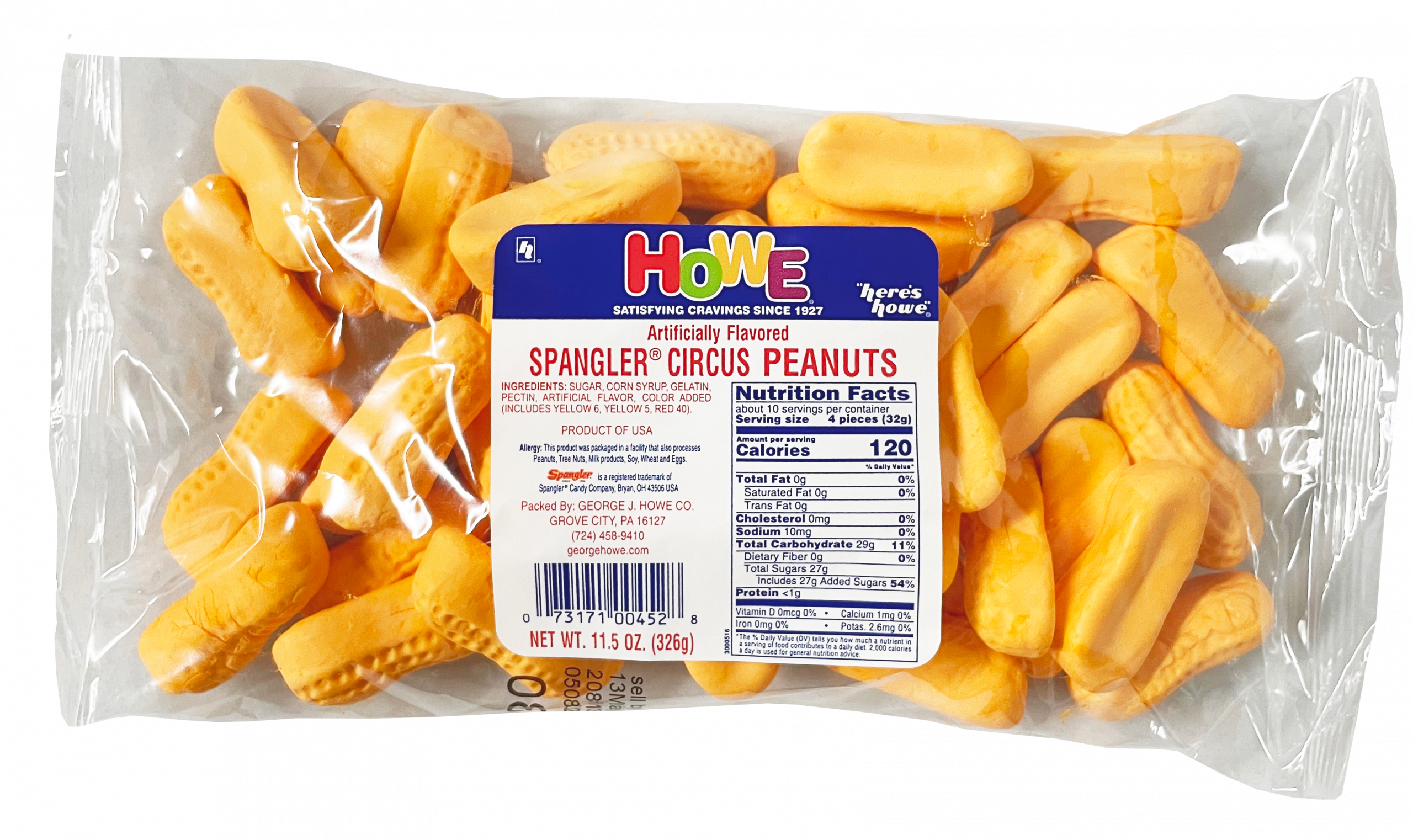 Nothing beats the original! When it comes to Circus Peanuts, accept no imitations. These are the original, Howe Company favorite, Howe Circus Peanuts continue to be produced by the Spangler Candy Company since the 1940s. A whimsical and nostalgic treat that delights the taste buds. These fluffy, banana-flavored marshmallow candies are shaped like oversized peanuts, adding a playful touch to any snack time or candy buffet. Perfect for children and the young at heart, these circus peanuts are sure to bring smiles with their fun shape and delicious flavor.