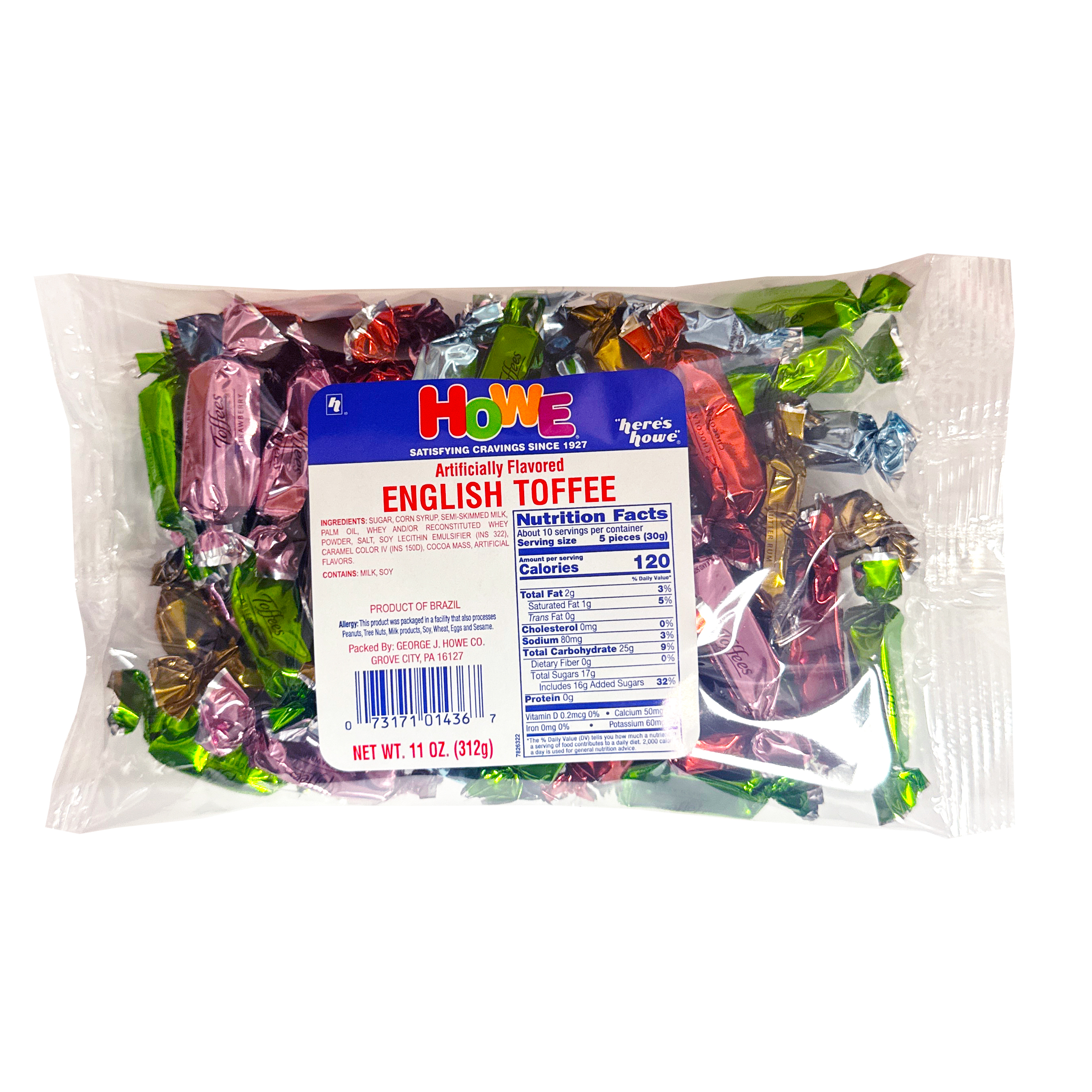 Delight in Howe English Toffee , a decadent treat crafted with care to indulge your sweet tooth. Each bite reveals a symphony of flavor. The only thing better than a thick, delicious chunk of mouth-watering toffee is a bag featuring no fewer than FIVE delicious toffee flavors! Each piece is individually wrapped in a bright color foil for extra freshness and flavor. It’s the soft, chewy timeless confection that toffee fans just love to sink their teeth into!
