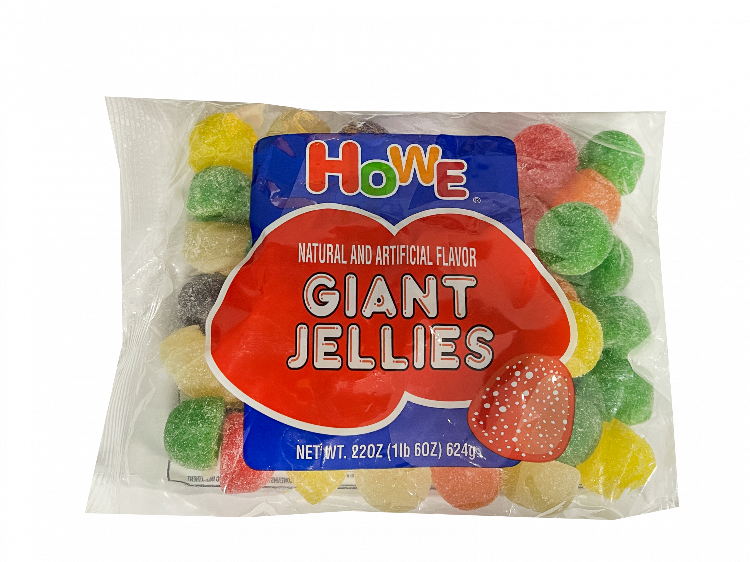Candy lovers of all ages really dig this mix of oversized jellies! Six BIG flavors are included in this assortment, five fruity and one spice. The five fruit-flavored varieties are cherry, orange, lime and lemon . . . the one spicy piece is anise. Howe Giant Jellies are a real hit at birthday parties and candy buffets, as well as toppers for your favorite crafts (think gingerbread houses) and desserts!