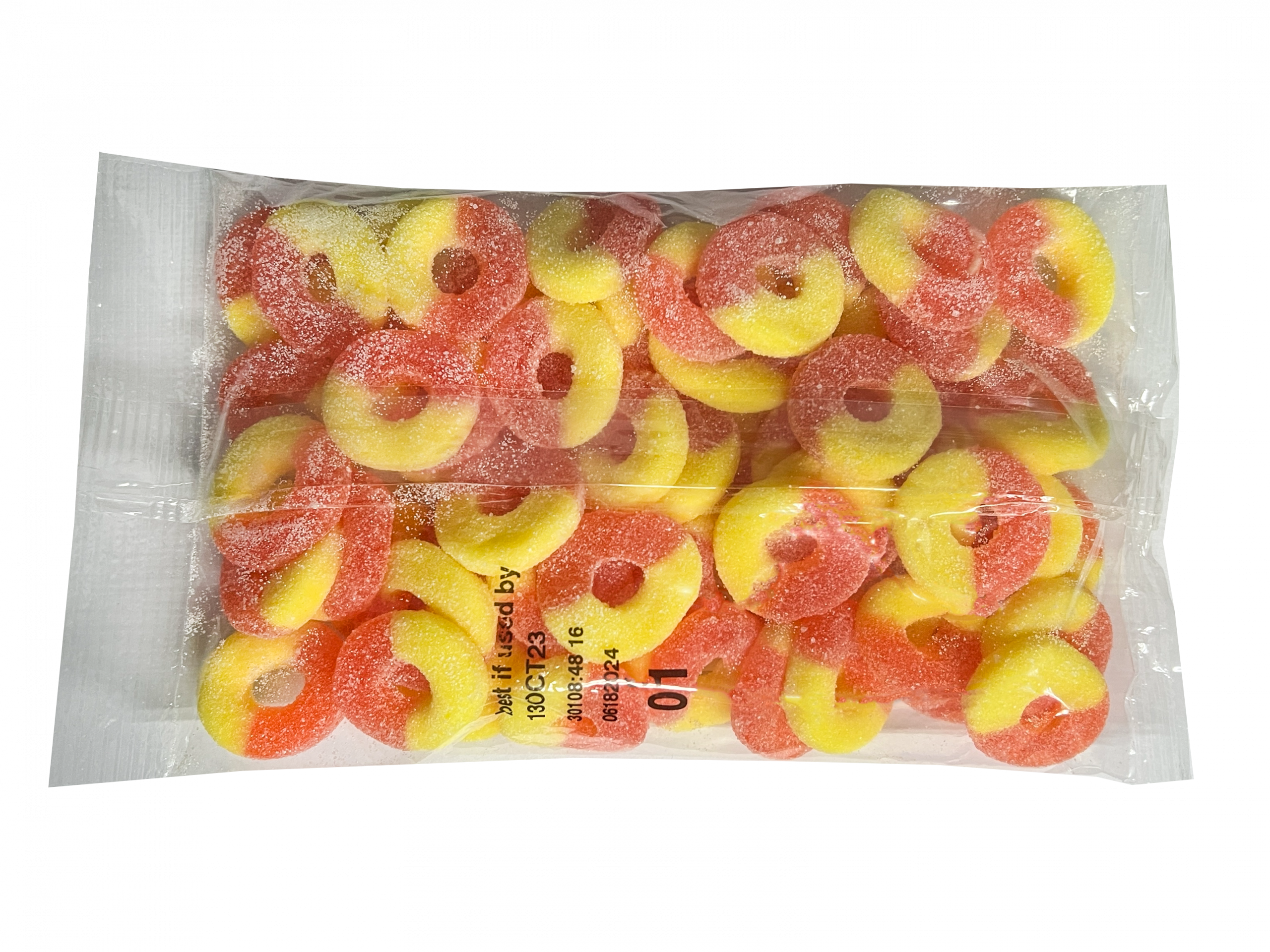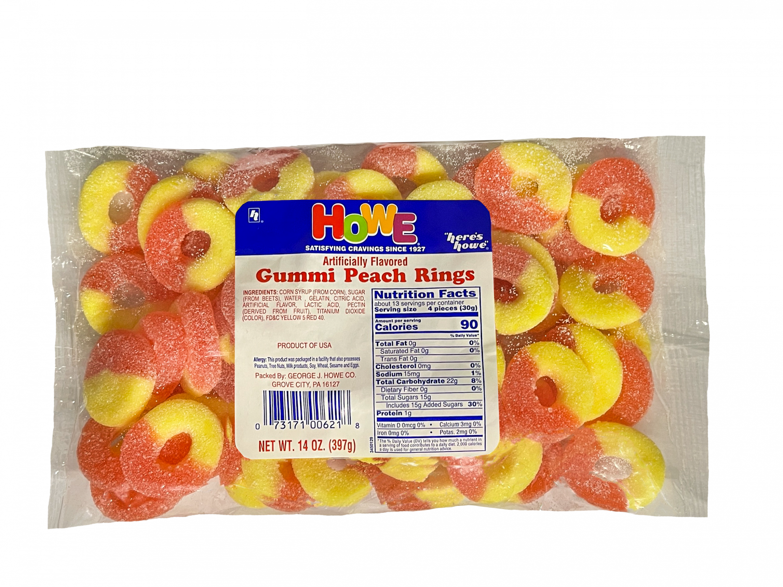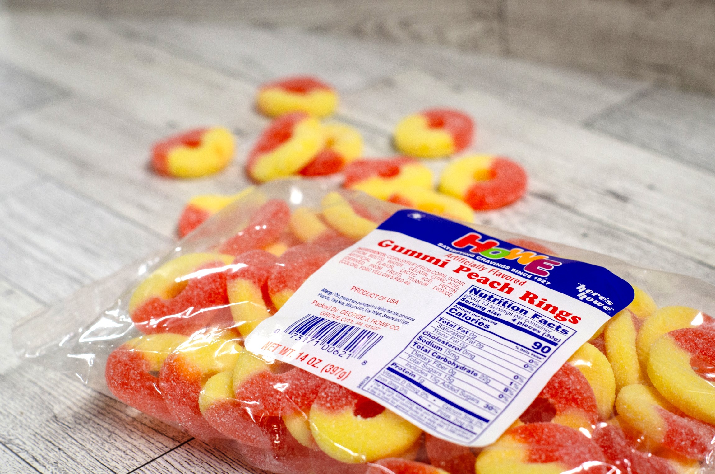 It’s an understatement to say we take our peach rings seriously around here. When you pack millions of these gummy favorites year-round, every peachy ring has to be the perfect combination of texture and taste and we’ve hit the sweet spot on both! These Howe Gummi Peach Rings feature a delicately firm, gummy texture, amazing juicy peach flavor and a sanded sugar coating that tickles your tongue! It’s no wonder they’re one of our best-sellers year after year!