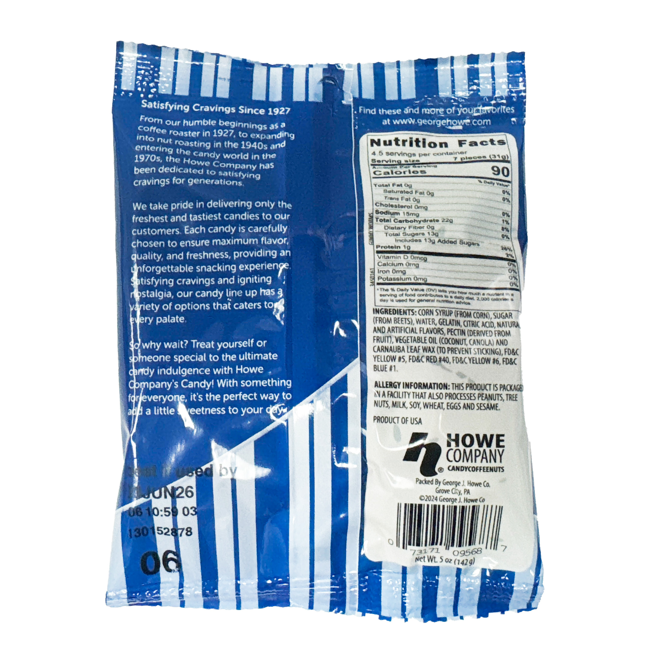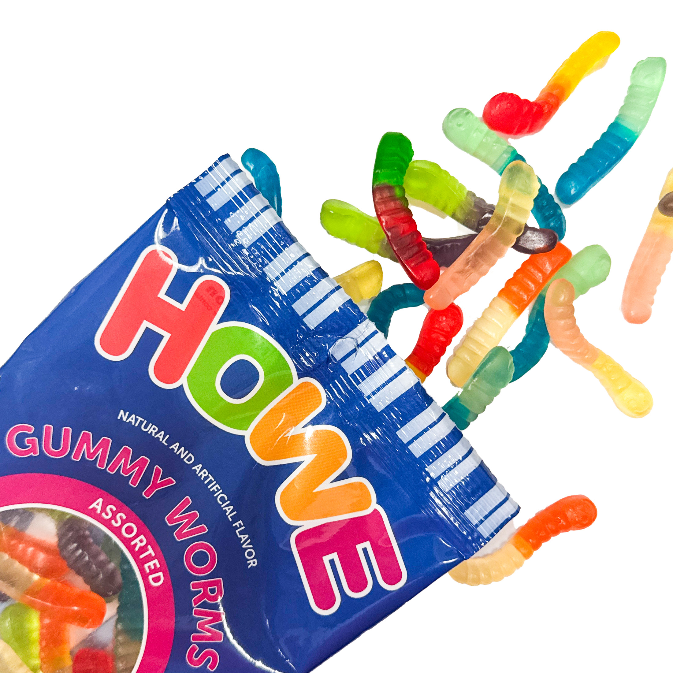 We’ll keep this real simple . . . your search for the ultimate gummy worms ends here at the Howe Company. Don’t settle for gummy worms that all taste the same when you can have a gummy worm assortment bursting with a whole fruit store of flavor . . . TWELVE fruit flavors to be exact: wild cherry, pink grapefruit, watermelon, strawberry, orange, blue raspberry, lime, grape, green apple, mango, pineapple and lemon! These Howe Gummi Worms are smaller in size but BIG in bite-size, chewy fruit flavor!