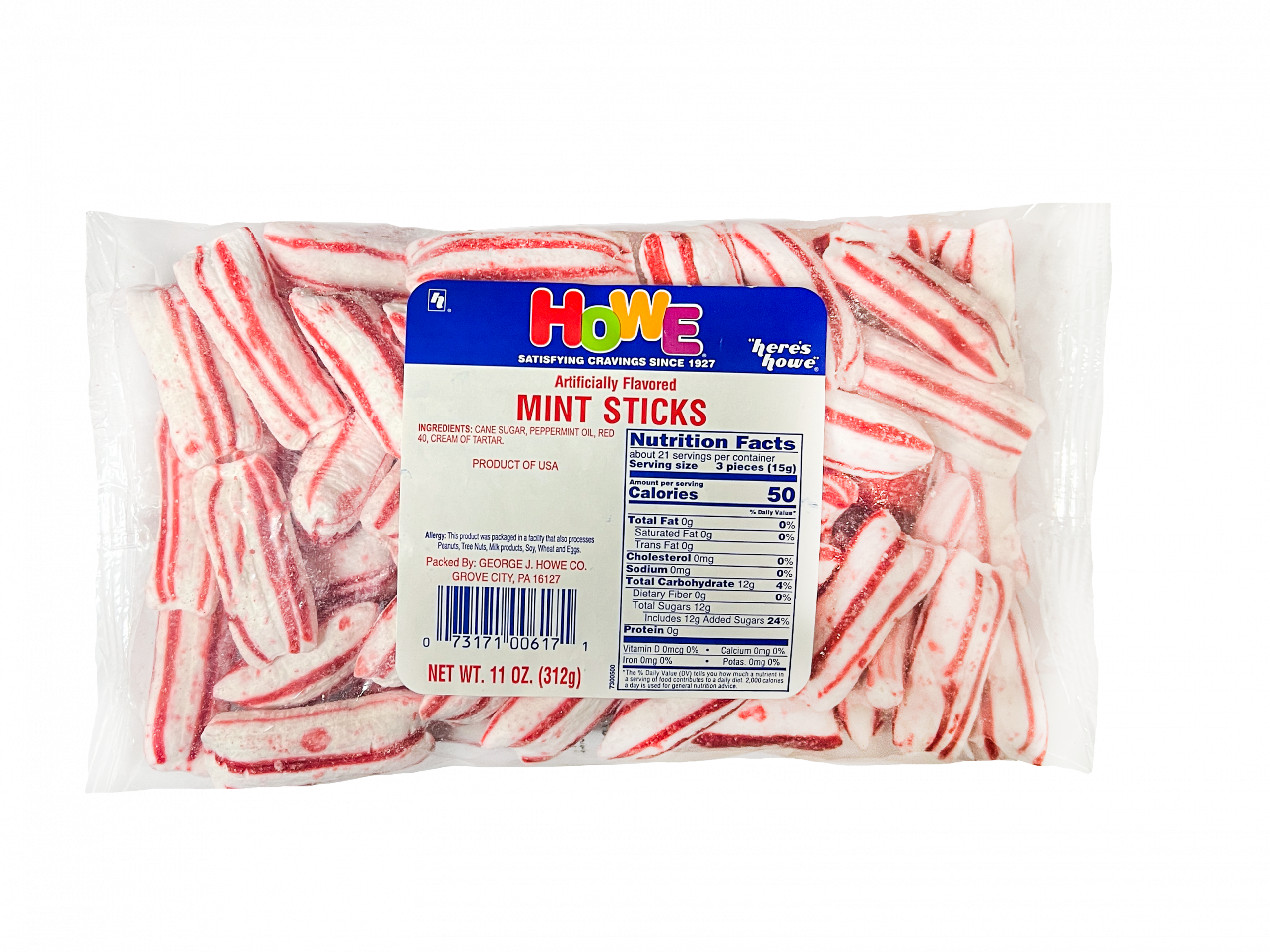 The only thing that beats a good peppermint stick at Christmas time is one that’s sold year-round! These Howe Mint Sticks bring an old-time candy feel to every pantry. The taste and texture are what separate these mint sticks from other peppermint favorites. Each two-inch piece features a fresh, but not too sweet, peppermint flavor, while the stick’s softer texture makes these stand out among its candy cane competitors.